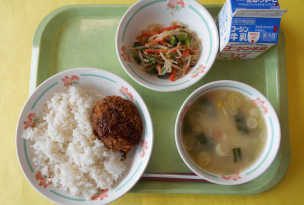 鶏肉…岩手、たまご…青森、ちりめんじゃこ…瀬戸内産、グリンピース…ニュージーランド、小松菜…埼玉、大根…千葉、長葱…茨城、玉葱…北海道、ごぼう…青森、人参…千葉、じゃがいも…北海道