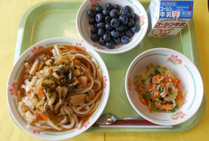 豚肉…群馬、人参…千葉、玉葱…北海道、長葱…茨城、人参…千葉、もやし…福島、キャベツ…長野、小松菜…群馬、りんご…青森、ブルーベリー…長野(伊那市)