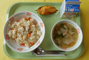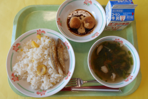 鶏肉…岩手、わかさぎ…北海道、ほうれん草…埼玉、たけのこ…熊本、人参…北海道、里芋…愛媛、栗…茨城