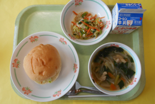鶏肉…岩手、ベーコン…茨城、玉葱…北海道、人参…北海道、パセリ…北海道、もやし…栃木、きゅうり…群馬、レモン…高知、セロリ…長野、キャベツ…茨城、小松原…群馬
