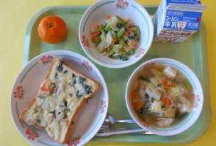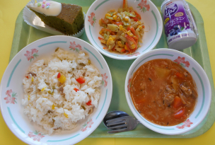 鶏肉…岩手、卵…群馬、グリンピース…ニュージーランド、キャベツ…千葉、ブロッコリー…群馬、もやし…福島、玉葱…北海道、人参…千葉、いちご…栃木