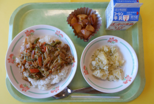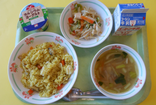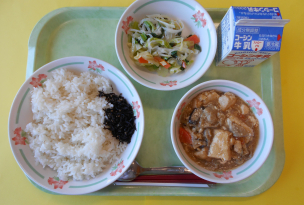 鶏肉…岩手、めかじき…静岡、あさり…中国、カリフラワー…群馬、キャベツ…千葉・群馬、きゅうり…茨城、じゃがいも…北海道、ブロッコリー…愛知、もやし…福島、れんこん…千葉、にんにく…青森、玉葱…北海道、生姜…高知、人参…埼玉