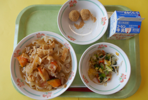 豚肉…群馬、さば…ノルウェー、キャベツ…群馬、ごぼう…埼玉、じゃがいも…北海道、もやし…福島、玉葱…北海道、生姜…高知、人参…千葉、長葱…福島、小松原…群馬、大根…茨城