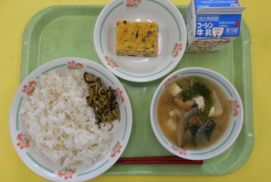 鶏肉…岩手、たまご…青森、ちりめんじゃこ…瀬戸内産、グリンピース…ニュージーランド、小松菜…埼玉、大根…千葉、長葱…茨城、玉葱…北海道、ごぼう…青森、人参…千葉、じゃがいも…北海道