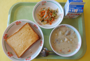 ベーコン…茨城、あさり…中国、貝柱…中国、むきえび…インドネシア、アカイカ…ペルー、レモン…アメリカ、人参…青森、もやし…栃木、キャベツ…群馬、小松菜…群馬、玉葱…佐賀、セロリ…長野、じゃがいも…長崎、パセリ…茨城