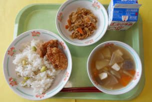 鶏肉…宮城、ちりめんじゃこ…兵庫、えだまめ…群馬、生姜…高知、人参…青森、ごぼう…埼玉、じゃがいも…茨城、大根…北海道、長葱…千葉