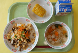 鶏肉…青森、卵…茨城、あなご…宮城、人参…青森、さやいんげん…群馬、長葱…千葉、小松菜…群馬、とうもろこし…茨城