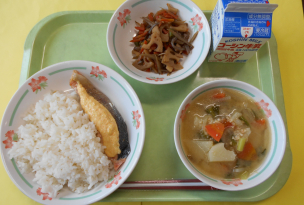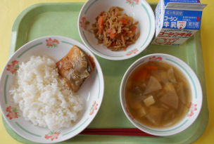 鮭…三陸産、小松菜…茨城、大根…神奈川、さやいんげん…茨城、玉葱…北海道、れんこん…千葉、長葱…秋田、ごぼう…埼玉、人参…北海道、じゃがいも…北海道