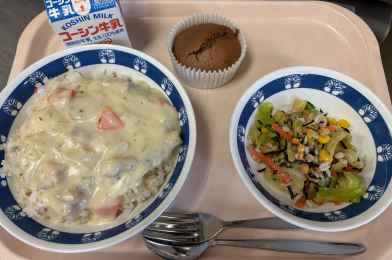 キャロットライスのチキンクリームソースがけ